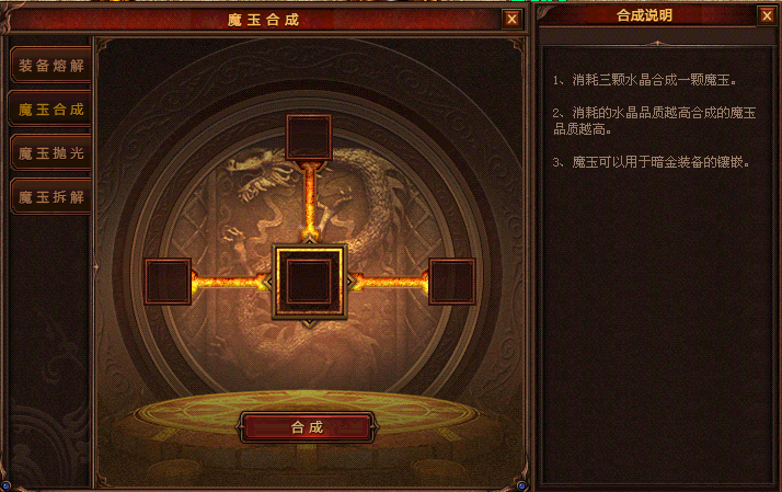 7、消耗三颗水晶可以合成一颗魔玉,消耗的水晶品质越高合成的魔玉抛光值越高