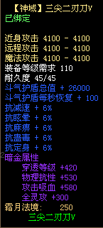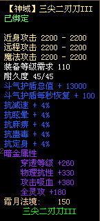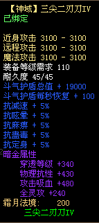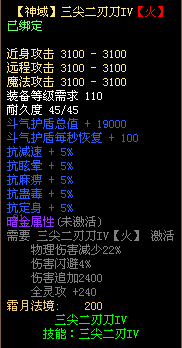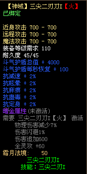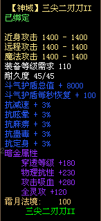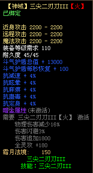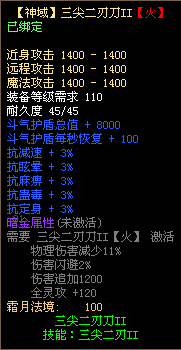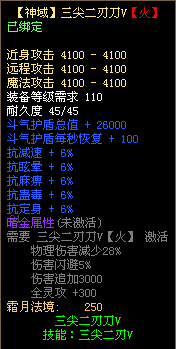 4、三尖二刃刀不可使用太古宝物改造,不可修改暗金属性,不可熔炼、锤炼、镶嵌