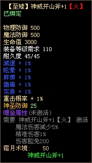 3、使用2个相同属性的神威开山斧可合成更高一级的神威开山斧,最高可合成至神威开山斧+5